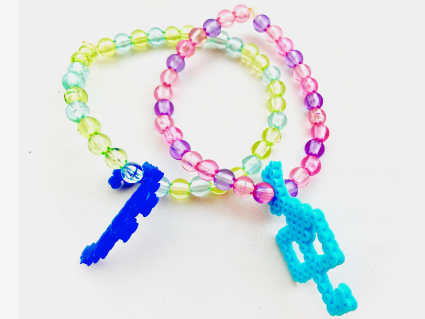 右手と左手を区別する時に使うのが、私の拙い手作りのブレスレット。
